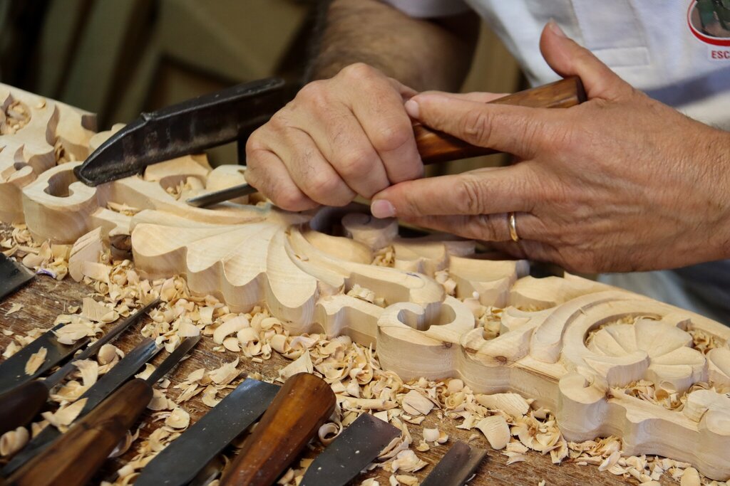 Nesta visita será dado a conhecer a marcenaria tradicional e, simultaneamente, a talha, fazendo um enquadramento do funcionamento de uma oficina. Serão apresentadas as tipologias de madeira, técnicas usadas, ferramentas e algumas terminologias e linguagem associadas ao ofício. Os participantes são convidados a pegar num pedaço de madeira e nas ferramentas do entalhador e assim deixarem-se levar pela arte e criatividade.