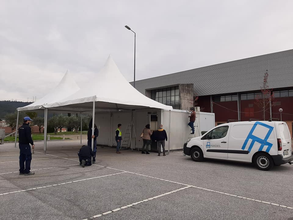 Está em montagem um centro para a realização de teste Covid-19, em Lordelo, no parque de estacionamento do Pavilhão Rota dos Móveis.