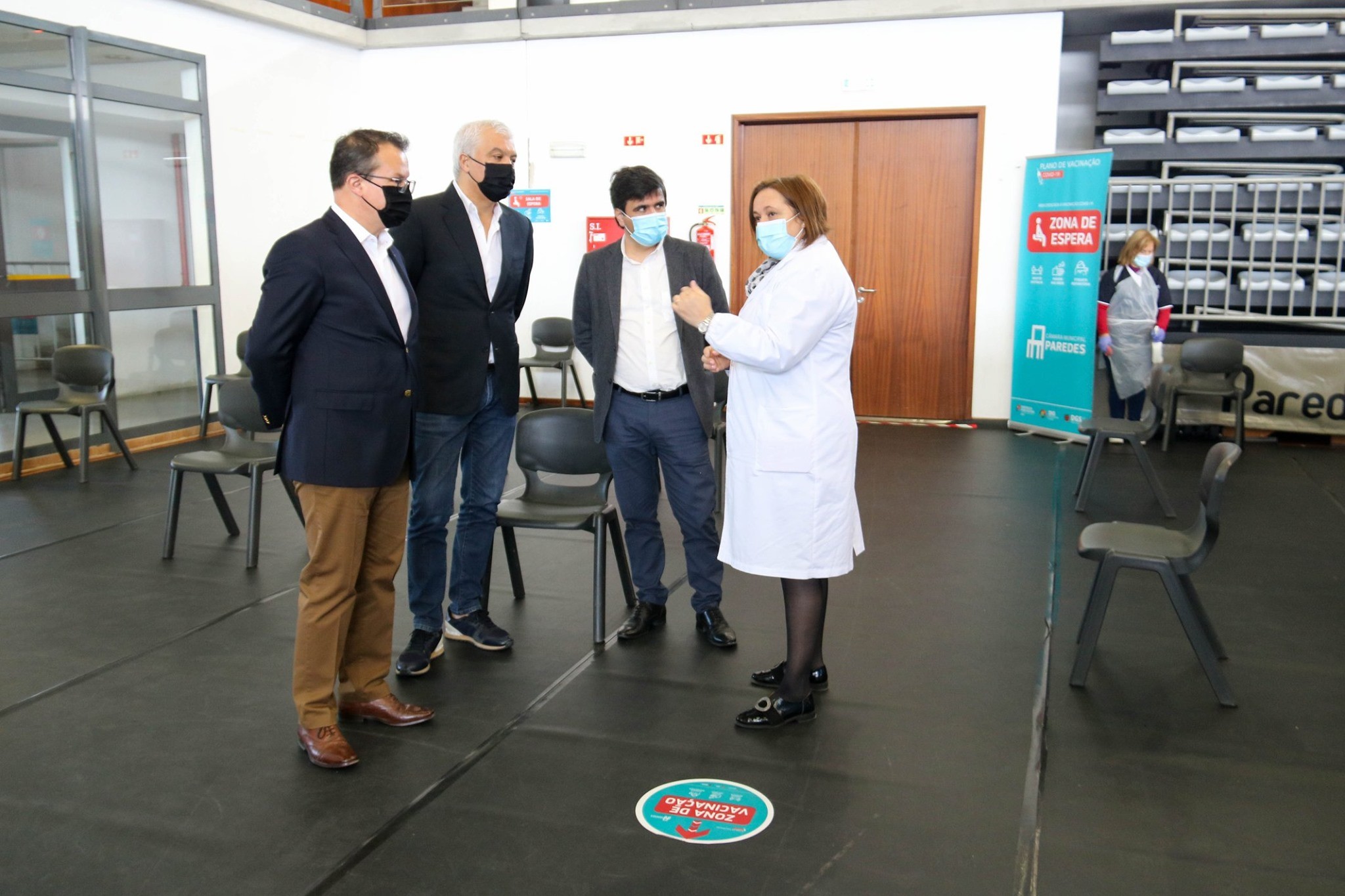 O Presidente da Câmara Municipal de Paredes, Alexandre Almeida, acompanhado do Vereador da Saúde, Paulo Silva e do Vereadora da Proteção Civil, Elias Barros, e da enfermeira Iolanda Couto, do ACES Tâmega II Vale do Sousa Sul, presenciou o processo de vacinação da comunidade escolar, dos docentes e não docentes, que tomaram hoje a primeira das duas doses da vacina tal como previsto no Plano Nacional de Vacinação contra a COVID-19.
