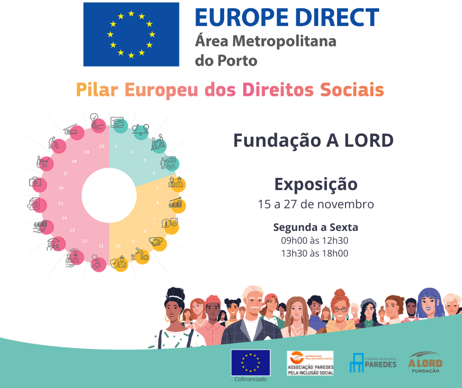 O Centro Europe Direct da Área Metropolitana do Porto está a dinamizar a exposição com o tema “O Pilar Europeu dos Direitos Sociais em 20 princípios”, patente da Fundação A Lord, em Lordelo, partir de segunda-feira, dia 15, e até 27 de novembro.